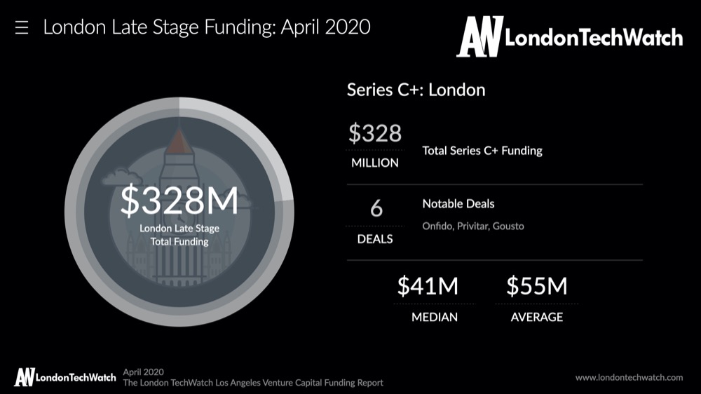 The median Series C+ round in London for April was $40.7M Tweet This