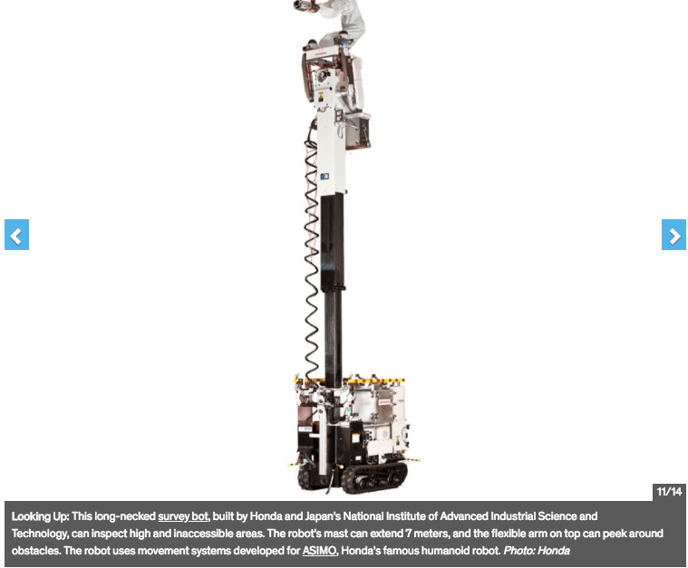 In writing the history of robotics one would be hard pressed not to find a correlation between human tragedy and technological advancement. Probably the greatest amount of funding and global interest in automation took place following the triple reactor meltdown of the Fukushima Daiichi Nuclear Power Plant on March 11, 2011. The Fukushima disaster was the result of a megathrust earthquake that triggered a fifty foot tsunami into the Japanese coastal city of 32 million, leaving 19,000 dead in its wake. As a direct result of the radiation leak, 573 people were killed and more than 160,000 residents evacuated. The toxicity levels have made cleanup efforts nearly impossible for humans, providing windows of opportunities (and a DARPA Challenge) for mechatronic innovators.