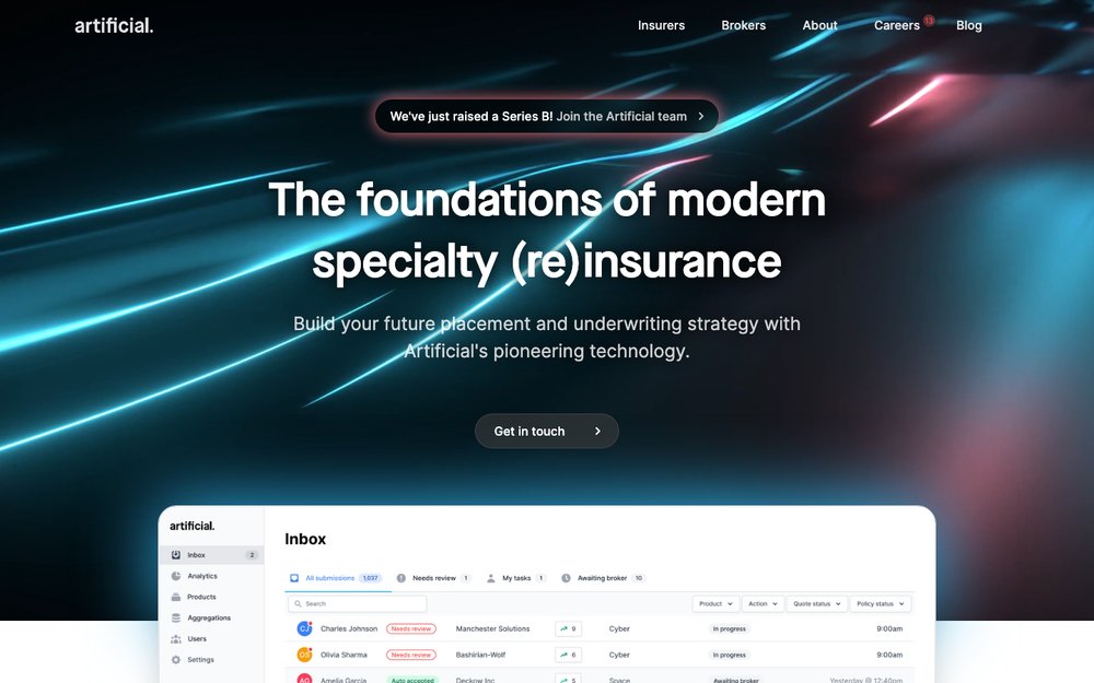 Description: Artificial Labs provides software that supports digital placement and underwriting workflows for specialty and commercial insurance. Founded by David King and Johnny Bridges in 2013, Artificial Labs has now raised a total of £53.7M in total equity funding and is backed by 6 Degrees Capital, CommerzVentures, Alma Mundi Ventures, Augmentum Fintech, and Force Over Mass Capital.